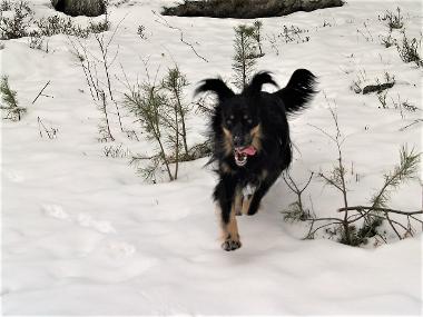En av mina hobbies, fyrfotingen Humlan. Fotot taget ute på öa 20190222, då hon och jag var ute och tittade att allt stod kvar.